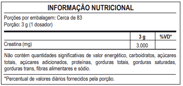 Creatina monohidratada. NÃO CONTÉM GLÚTEN.