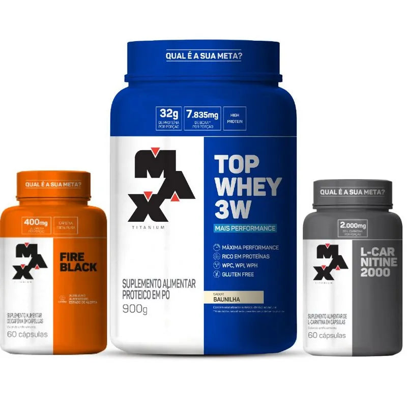 Kit : Top Whey 900g +Performance + Fire Black 60 caps + L-Carnitina