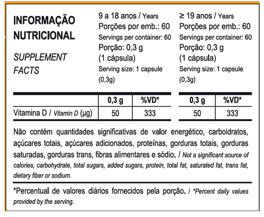 A Vitamina D3 da Max Titanium possui alto teor de Vitamina D por cápsula (2.000 UI), que auxilia no funcionamento do sistema imune e muscular e na absorção de cálcio e fósforo.