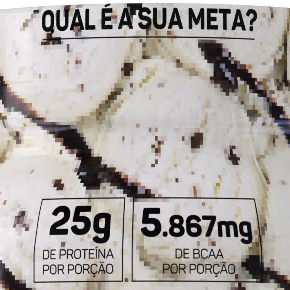 Proteína concentrada do soro do leite (WPC), proteína isolada do soro do leite (WPI), cacau alcalino, granulado de chocolate, proteína hidrolisada do soro do leite (WPH), cloreto de sódio, aromatizantes, espessante goma xantana, emulsificante lecitina de soja** e edulcorantes sucralose e taumatina.