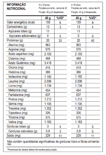 Modo de preparo para o shake: Para o preparo de uma porção, misture 40g (2 dosadores cheios*) do produto em 200mL (1 copo) de água ou outra bebida de sua preferência (leite integral ou desnatado, por exemplo) com o auxílio de um liquidificador ou coqueteleira.